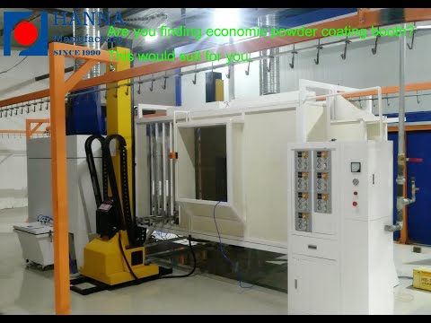 Powder coating lines in the video use PVC material powder coating booth, this usually used for no more than 3 colors project. It's very economic and competitive.