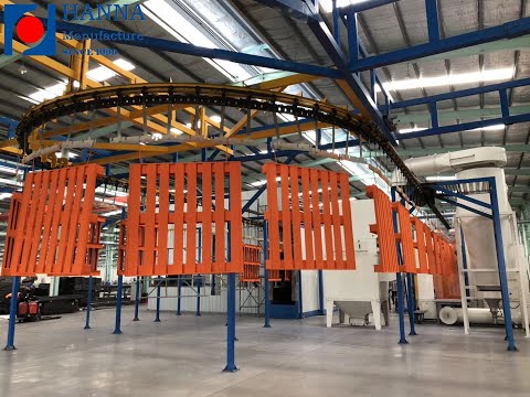 PVC powder coating booth with cyclone recovery system(quick color change), automatic powder coating+ manual filling, bridge type curing oven, automatic conveyor system.